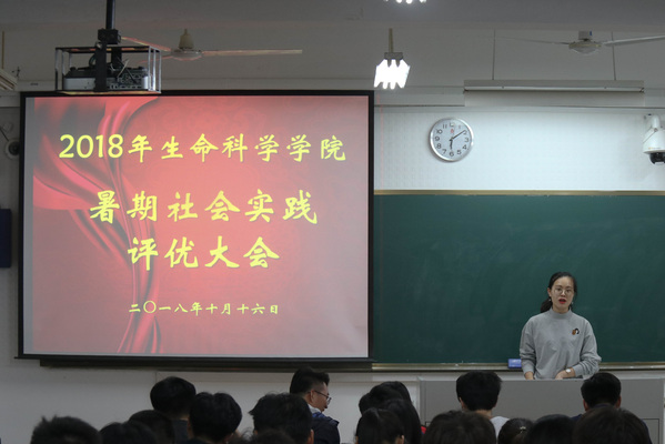 10月16日晚上6点,生命科学学院暑期三下乡社会实践活动评优大会在教学楼B414举行。本次会议由院团委副书记居怡主持,参与此次会议的嘉宾有:生科院辅导员石乔梓、王哲,生科院团委学生会主席团,各部门部长以及各班级代表。会议分为两个部分,第一部分是学校重点团队汇报,第二部分是优秀团队及优秀个人的汇报与评比。此次会议旨在展示实践活动的成果,并总结实践过程中的经验,为今后实践活动的开展提供借鉴意义。