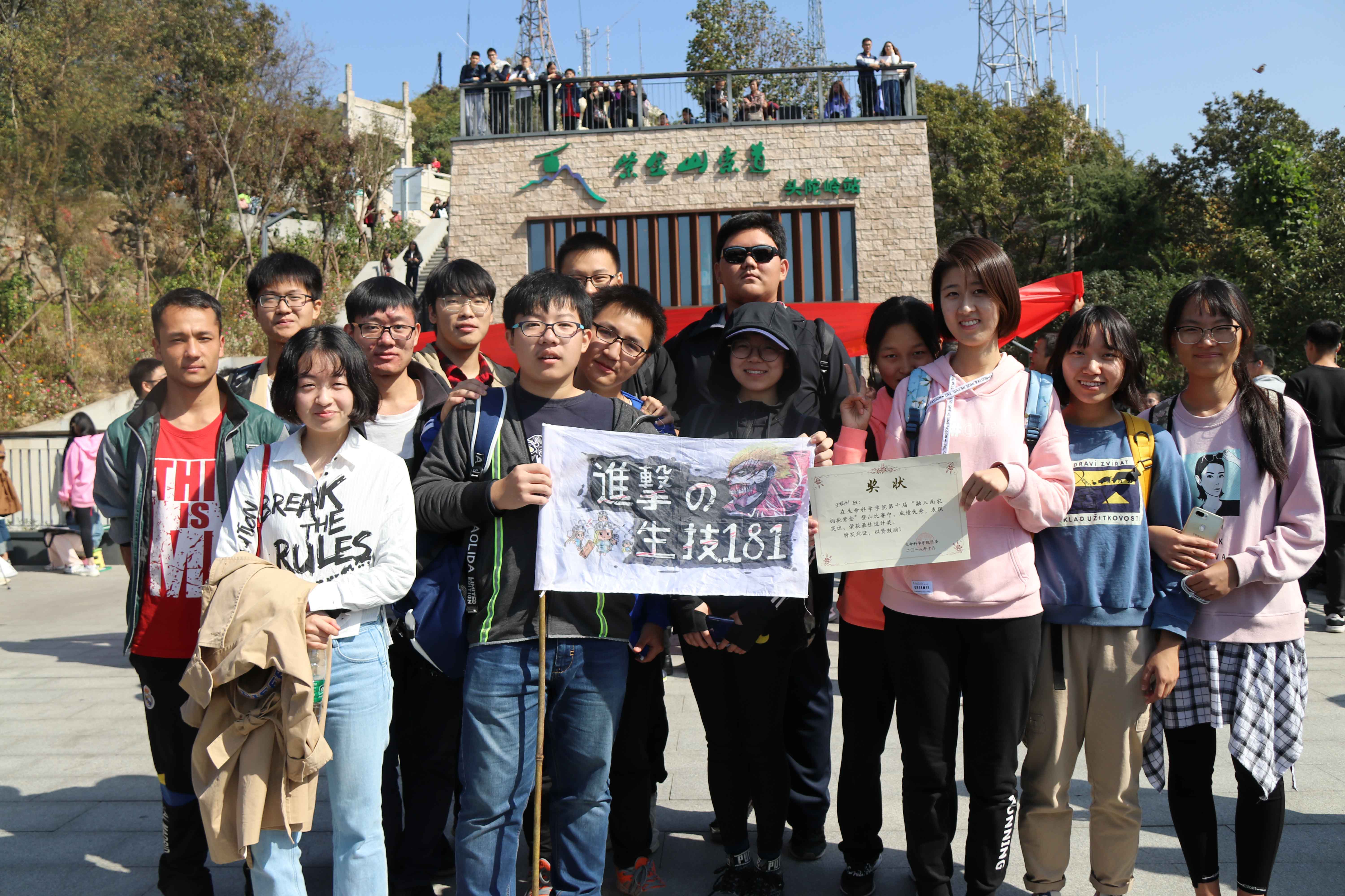 时钟山龙蟠石城虎踞,恰同学少年风华正茂。生技182班团务助理庄宇辰寄语到:“愿他们以后的学习、生活可以像今天的登山一样,一路互帮互助走向人生巅峰。”
