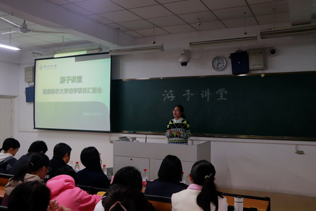 11月14日下午,农学院于教学楼C503举行游子讲堂——暨农学院2018年康奈尔大学访学项目汇报会。农学院副院长王秀娥教授、农学院副院长黄骥教授、农学院党委副书记殷美、杨东雷教授、鲍永美教授、刘蕾蕾副教授及辅导员姚敏磊出席汇报会。汇报由植物实验161班王宁同学主持。