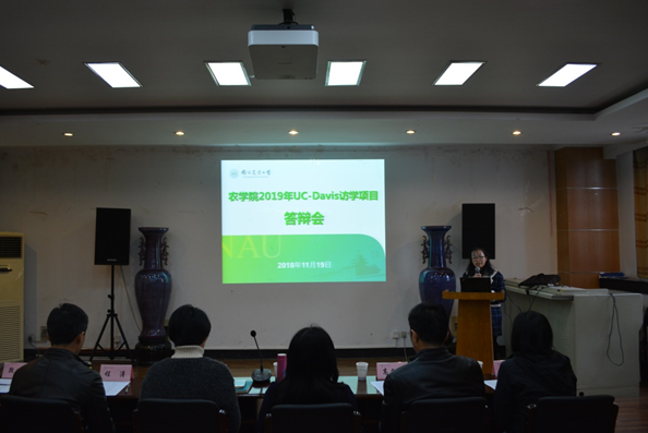 11月19日下午,农学院在生科楼E1001举行加州大学戴维斯分校寒假访学项目遴选。本次遴选采取全英文答辩。出席本次遴选答辩的有农学院副院长王秀娥教授、国际合作交流处副处长魏薇、农学院党委副书记殷美、高夕全教授、程涛教授、鲍永美教授。遴选答辩会由植物实验151班庄宇萌同学主持。