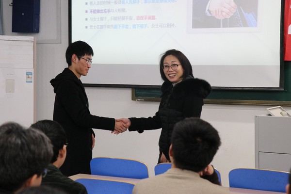 交流分享会还请到了南京艾瑞培训学校的孟丽敏老师给同学们讲述了职场礼仪的要点以及企业如何考察面试者。
