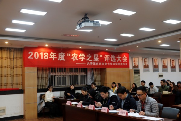 2018年12月12日晚六点,农学院2018年度“农学之星”评选大会在生科楼E1001拉开帷幕。出席本次活动的有团委组织部刘昊晰,学工处学生事务管理中心肖伟华,动物医学院本科生辅导员金洁南,农学院本科生辅导员姚敏磊、马丽娟。参与本次活动的还有大学一年级到三年级的本科生。大会由农学院副主席赵逸杨主持。