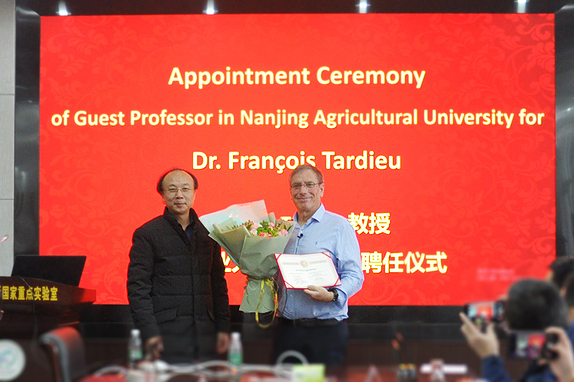 Tardieu教授对成为我校客座教授表示由衷的喜悦,他对我校在作物表型组学领域积极开展合作研究及取得的成绩做出了高度评价,希望双方合作能够深入长久。