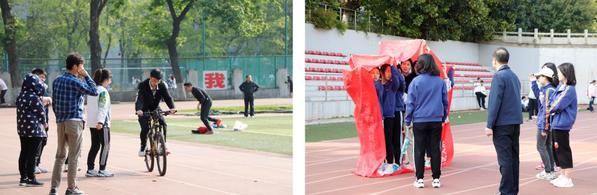 在集体项目结束之后,主席团的成员准备了神秘小游戏,同学们组队挑战,把运动会的欢乐氛围推至高潮。