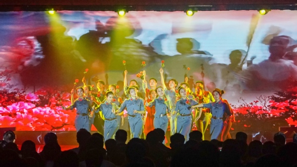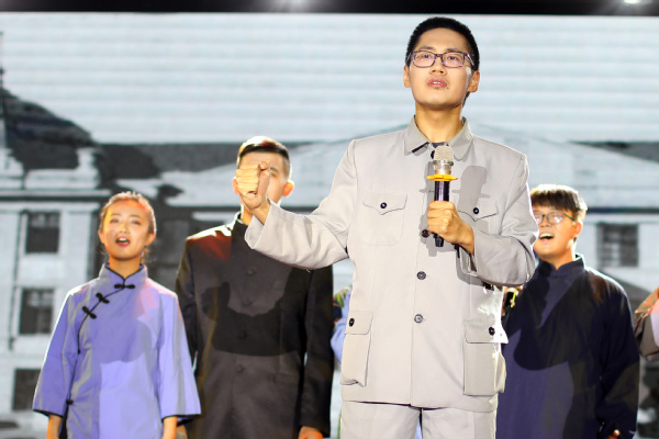 整场晚会分为三个篇章——拂晓、礼赞、同歌。无论是高呼“誓死力争、还我青岛”的五四青年,还是无畏雪山草地,用双脚丈量祖国山河的红军;无论是面对日军入侵甘用生命守卫的一张药方,还是满载着“国仇未报,何以家为”的一封封家书,抑或是绽放在军民鱼水情中的满坡映山红,都书写着中华民族开天辟地、敢为人先的首创精神,坚定理想、百折不挠的奋斗精神,立党为公、忠诚为民的奉献精神。“我最亲爱的祖国,我永远紧贴着你的心窝,永远给我碧浪清波心中的歌……”在全场的大合唱声中,晚会缓缓落下帷幕。整场晚会在带领同学们学习回顾中华民族奋斗史的同时,使台下观众经历了一场润物无声的“红色洗礼”。