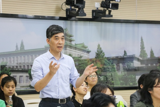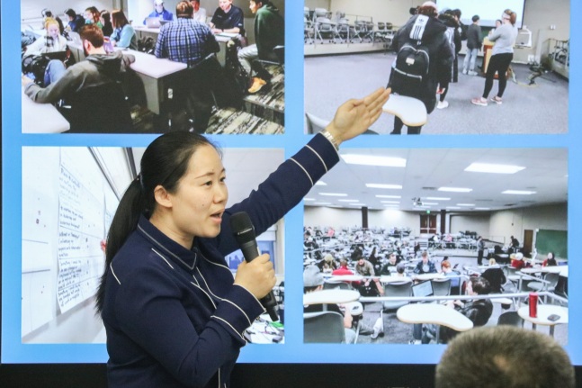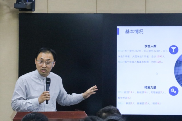 丁晓蕾简要介绍了教师海外研修项目的背景和目的。她指出,为进一步拓宽青年骨干教师的国际化视野、提升教学能力,教师发展与教学评价中心选派8名教师赴美国密歇根州立大学学习国外高水平大学先进教育教学理念和教学方法,最终为促进我校教育教学改革,提高人才培养质量服务。