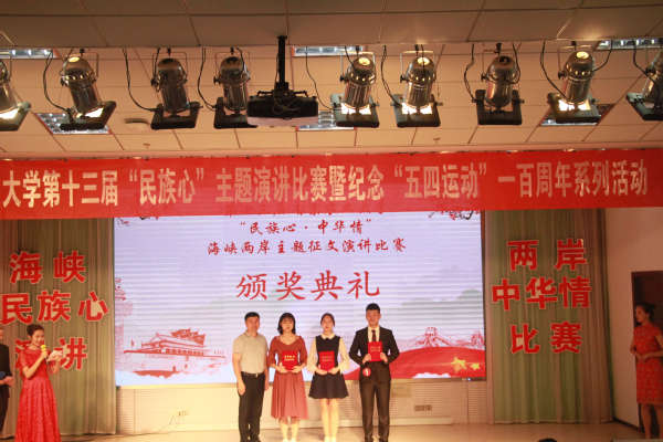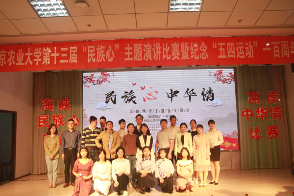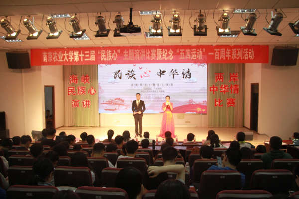5月15日晚,由中山陵园管理局孙中山纪念馆和校团委主办,动物科技学院团委承办的“民族心,中华情”海峡两岸征文演讲比赛在教四楼报告厅举行。孙中山纪念馆的赵培华老师和刘哲蔚老师,党委组织部副部长许承保老师,党委办公室副主任、统战部副部长丁广龙老师,教务处副处长、公共艺术教育中心副主任胡燕老师以及南农大学生就业指导与服务中心副主任吕一雷老师,动科院副院长蒋广震老师担任了此次比赛的嘉宾及评委,全校近200名学生观看了本次比赛。