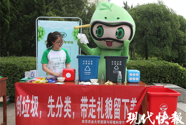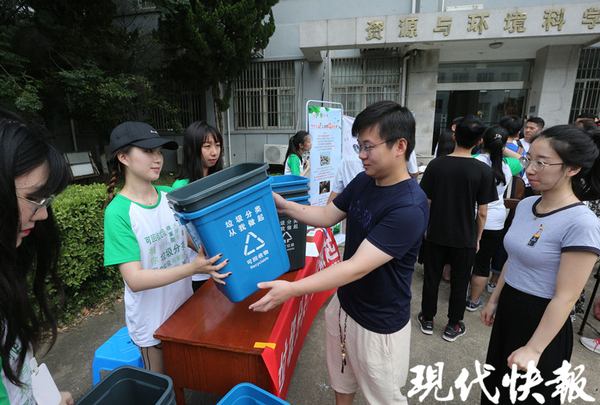 现代快报讯(记者 王益 / 文 马晶晶 / 摄 通讯员 李长钦 李鸣 许天颖)7 月 20 日,ios版雷竞技官网举行了一场垃圾分类行动,资源与环境科学学院率先在全校范围内发起 强制垃圾分类 倡议。