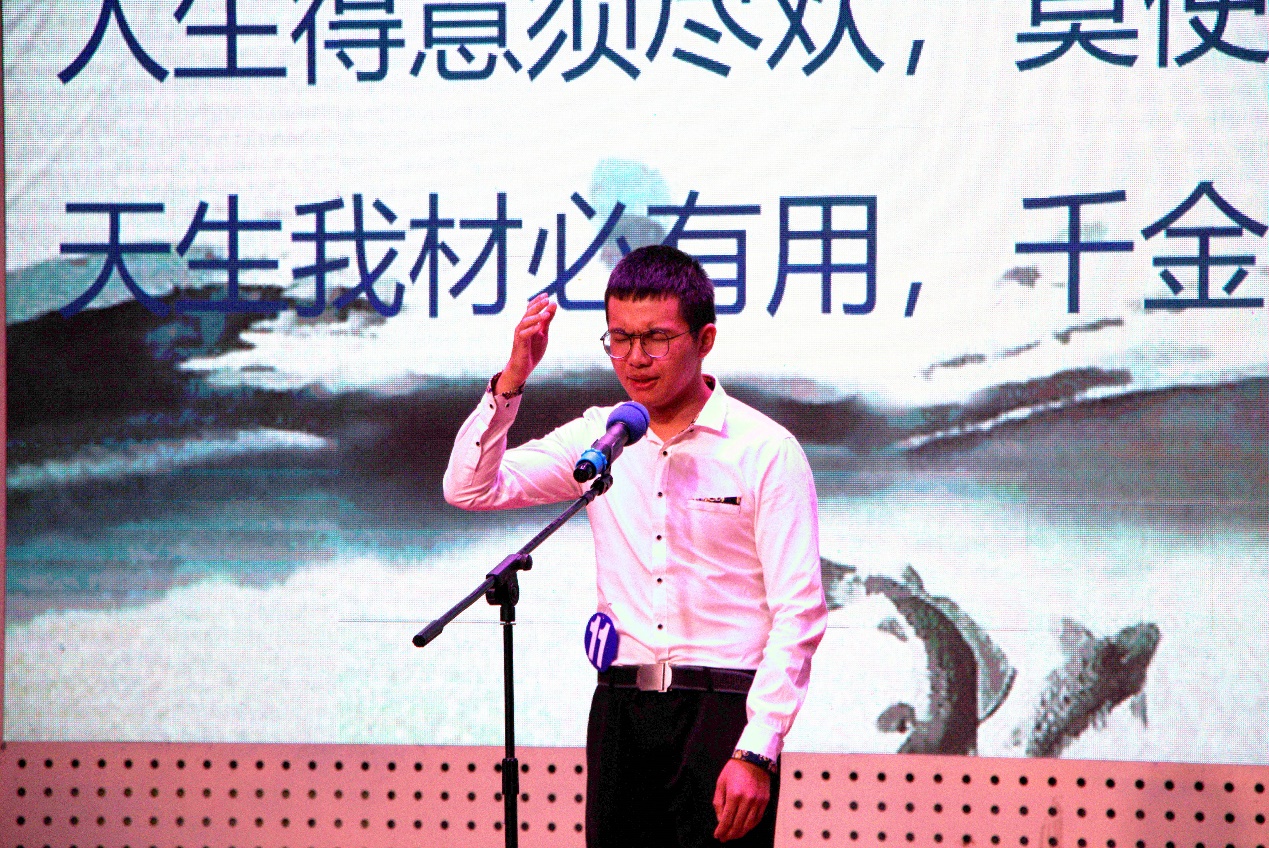 比赛开始前,胡燕宣读了习近平总书记给全国涉农高校书记校长专家的回信。随后比赛正式开始,全场比赛分为和“青春放歌”四个篇章,20名选手通过抽签随机分为5组,朗诵不同时代的优秀诗词作品,抒发对祖国和时代的赞美。