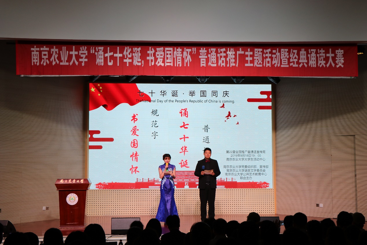 今年是新中国成立70周年,也是第22届普通话推广宣传周,活动围绕“颂七十华诞,书爱国情怀”这一主题从内容到形式,从组织到宣传,都取得了满意的效果。本次活动也是学校“不忘初心、牢记使命”主题教育工作的一部分。本次活动进一步增强了我校师生的语言规范意识,推动我校语言文字工作的纵深发展的具体举措,也激励南农学子认真学习领会习近平总书记给全国涉农高校书记校长和专家的回信精神,勇担职责使命,以强农兴农为己任,致力推进乡村全面振兴,为中华民族伟大复兴书写壮丽篇章。