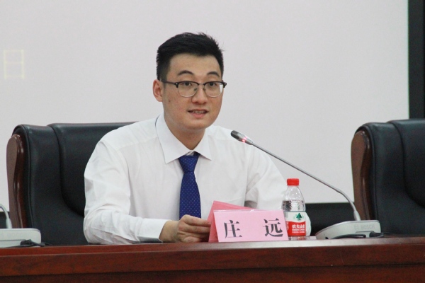 谭智赟致辞。他首先代表校团委向全体研究生干部表示衷心祝贺,同时也对上一届学生干部做出的贡献表示肯定和感谢。校研会新成立的功能型党支部,将为我校党团共建注入新的活动。十六届研究生神农科技节也将继续弘扬我校“诚朴勤仁”的校训精神,引领广大研究生为建设世界一流农业大学而努力。
