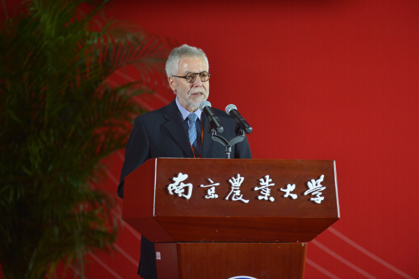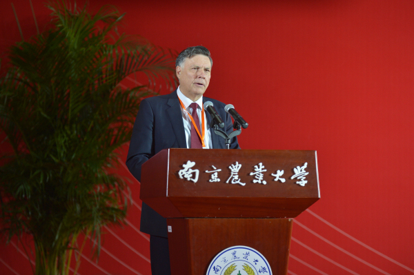 全球农业与生命科学高等教育协会联盟(GCHERA)主席John Kennelly,中国农业农村部国际合作司副司长韦正林,GCHERA世界农业奖评审委员会主席Maurice Moloney,GCHERA秘书长James French,拉萨尔大学校长、GCHERA前任主席Philippe CHOQUET,国际家畜研究所董事会主席Lindsay Falvey,国际家畜研究所董事会副主席Elsa Murano,国际家畜研究所所长James Smith,世界粮农组织高级顾问Harinder P Makkar,大北农集团副总裁莫宏建,中国热带农业科学院党组书记崔鹏伟,中国农业大学副校长王涛,南京市浦口区副区长、南京国家农创园管委会副主任王礼文,以及ios版雷竞技官网校领导陈发棣、刘营军、高立国、胡锋、董维春出席典礼。来自美国、加拿大、南非等15个国家的100多位涉农高校和科研院所的专家学者,全球及洲际与区域高等农业教育协会、国际家畜研究所(ILRI)、中外涉农大学、相关政府组织负责人汇聚南农,共同探讨全球农业与生命科学领域的科研与教育创新问题。ios版雷竞技官网数百名师生参加典礼。