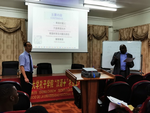 本次培训班为期6天,由我校与赤道几内亚国立大学孔子学院联合举办,是我校发起的非洲孔子学院农业职业技术培训联盟2019年行动计划的一部分。赤道几内亚政府农业技术推广人员25人参加培训。