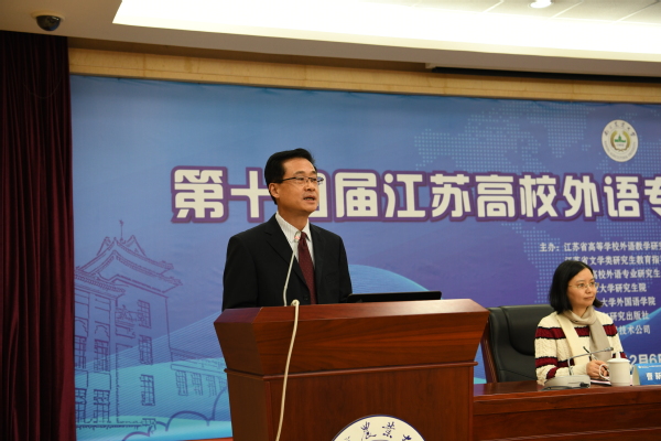 曹新宇宣读了江苏省文学类研究生教育指导委员会发来的贺信。贺信指出,外语专业在讲好中国故事、传播好中国声音,阐释好中国特色、构建中国国际话语权等方面一直发挥着重要作用。本次研究生论坛对拓宽外语专业研究生的学术视野、加强学术交流意义重大,有利于营造善于思考、刻苦学习、严谨治学、敢于创新的良好学风和学术氛围。