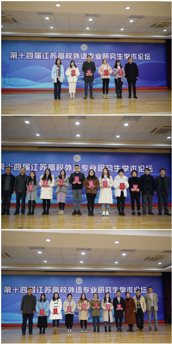 论坛期间,由江苏各高校近120人博硕士研究生代表分为翻译学、文学与文化、语言学三个方向、七个小组进行了论文汇报,共评选出了15篇优秀论文。各高校46名博硕研究生分为翻译学、文学与文化、语言学三个方向、四个小组进行了大会发言,点评嘉宾进行了提问、建议和评审。论坛期间,共评选出优秀论文一等奖4名,二等奖8名,三等奖16名,优胜奖33名。