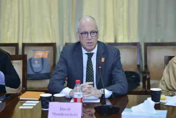 丁艳锋对DavidManderscheid一行的到访表示欢迎。他表示,两校近年来交流频繁,合作成果丰硕。通过本次会见希望进一步厘清中美农作物生物学研究和教育中心(以下简称“中心”)的工作机制,充分发挥中心在促进学术交流、科研合作方面的作用。丁艳锋希望,通过“中心”2020年研讨会的展开,双方学者可以充分交流并探索共同感兴趣的合作领域,应对中美两国科技合作需求,共同申请政府间国际科技合作项目,带动两校在师生交流、联合培养等领域的深层次合作。