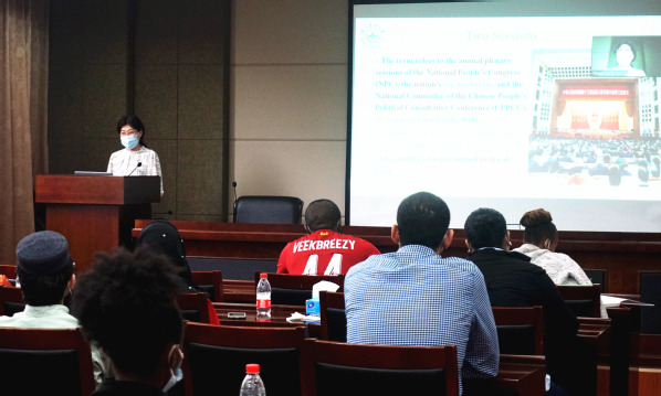 2020年全国“两会”聚焦全球目光。其中,一个特殊群体——外国留学生,一直密切关注着会议动态。5月30日,我校国际教育学院组织外国留学生学习研讨“两会”相关精神和重点内容。120余名外国留学生通过线上线下方式参与了此次活动。活动由国际教育学院副院长童敏主持。