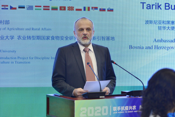 中国农业农村部国际合作司参赞吴昌学、波黑驻华大使塔里克 · 布克维奇、我校副校长胡锋出席中国—中东欧国家农业应对疫情专家视频会议并致辞。他们希望中国—中东欧国家农业专家学者以此次视频研讨会为契机,深入探讨农业应对疫情有关经验和措施,进一步加强农业学术界信息交流分享,凝聚共识,携手应对疫情以及后疫情时代带来的挑战,挖掘疫情下的机遇,为中国—中东欧国家农业合作增添新动能、开拓新局面。视频会议由我校经济管理学院院长朱晶主持。