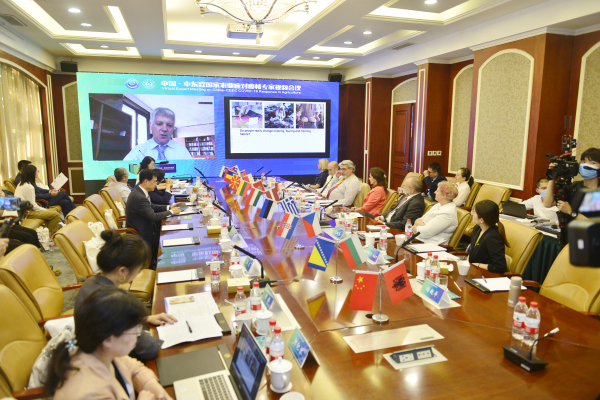 保加利亚驻华大使波罗扎诺夫代表中东欧国家驻华使节致辞,希腊、匈牙利等国农业部长发来视频致辞。