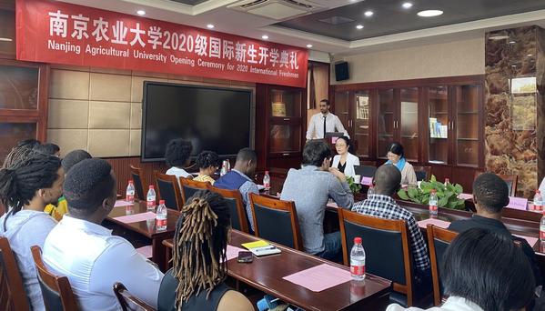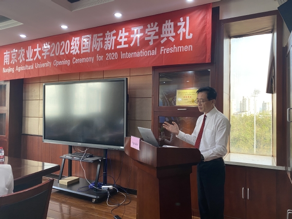 9月30日下午,我校2020级国际新生开学典礼在行政北楼D602会议室举行。已到校的15名国际新生和尚在境外的48名国际新生分别通过线下线上方式参加了活动,开启了南农学习和生活新征程。副校长胡锋出席会议并致辞。保卫处处长崔春红、国际教育学院直属党支部书记缪培仁及国际老生代表参加了典礼。典礼由国际教育学院院长韩纪琴主持。