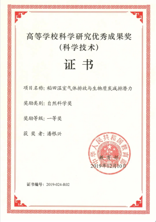 2020年11月18日,美国科睿唯安科学信息公司发布了2020年“高被引科学家”名单,全球60多个国家的6167位来自各领域的科学家入榜。潘根兴教授及其团队近年来在农业土壤质量、稻田土壤有机质及生态系统功能、土壤固碳与应对气候变化、秸秆生物质炭与炭基农业等方面的研究为国际先进水平,引领生物质炭绿色农业技术研究和健康农业服务,连续有8篇论文列为农业领域热点论文和top 1%高被引论文,超过10篇论文列入国内F5000引领性论文。