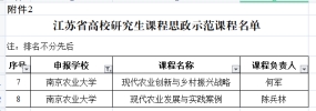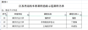 近日,江苏省教育厅下发了《关于公布首批江苏省高校课程思政示范课程名单的通知》(苏教办高函〔2021〕11号),我校申报的植物学(课程负责人:强胜)、作物栽培学各论(课程负责人:丁艳锋)、土地经济学(课程负责人:冯淑怡)3门本科课程,现代农业创新与乡村振兴战略(课程负责人:何军)、现代农业发展与实践案例(课程负责人:陈兵林)2门研究生课程,共计5门被认定为首批江苏高校课程思政示范课程。据悉,江苏省教育厅共认定首批省级本科课程思政示范课程98门,研究生课程思政示范课程30门。