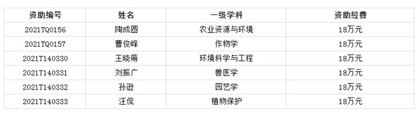 日前,中国博士后科学基金会近期组织开展的2021年度博士后特别资助项目的申报和评审工作,我校4位博士后获中国博士后科学基金第14批特别资助(站中),2位博士后获中国博士后科学基金第3批特别资助(站前),获资助人数位居全国农科高校第二。