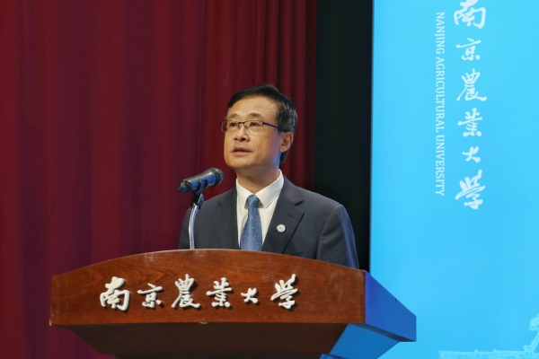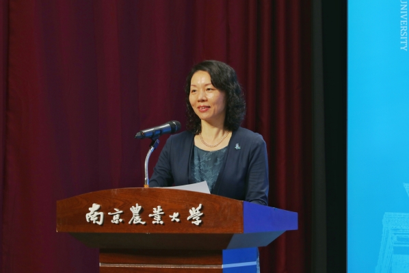 我校经济管理学院院长朱晶代表五个专业人才培养学院发言。她深情地回忆了2016年5月访问密西根州立大学的情景。她表示,密西根州立大学的优质教学资源、科研实力及其国际化办学给她留下了深刻影响。朱晶勉励同学们认真学习,只争朝夕,不负韶华;在科学研究中不断进取,有所突破;树立坚定的理想信念,努力成为国之栋梁、南农骄傲。