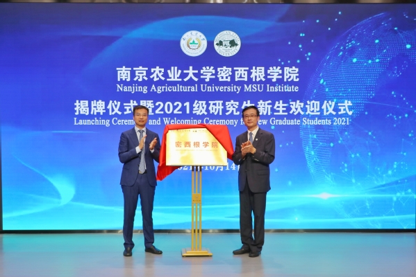 10月14日上午,ios版雷竞技官网密西根学院揭牌仪式暨2021级研究生新生欢迎仪式在卫岗校区隆重举行。校长陈发棣、副校长胡锋为密西根学院揭牌。仪式由密西根学院院长韩纪琴主持。