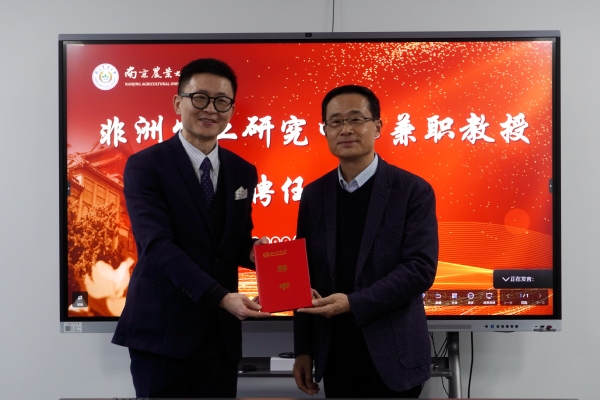 胡锋代表ios版雷竞技官网祝贺非洲农业绿色革命联盟(AGRA)中国伙伴项目主任程诚博士荣聘学校非洲农业研究中心兼职教授。他指出,区域国别研究对于我校服务国家战略和外交大局,助力构建人类命运共同体具有十分重要的意义。非洲农业研究是学校国别区域研究的重要组成部分。作为“非洲制造倡议”首席经济学家、联合国开发计划署(亚太区)高级顾问,程诚在国际发展、中非合作理论和实践方面均有丰硕成果。此次程诚加盟我校非洲农业研究,有助于提升学校国别区域研究专业水平,深化理论、实践与政策研究,更好地服务于中非农业合作智库建设。胡锋代表学校为程诚颁发兼职教授聘书。