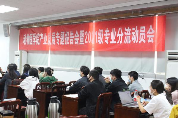 3月30日下午,动物医学院组织召开产业发展专题报告会暨2021级专业选拔动员会,院长姜平、党委副书记刘照云、副院长曹瑞兵,教师代表教授王德云、副教授杨振出席会议。2021级全体本科生、班主任、辅导员、教学秘书参加会议。会议线上、线下同步进行。