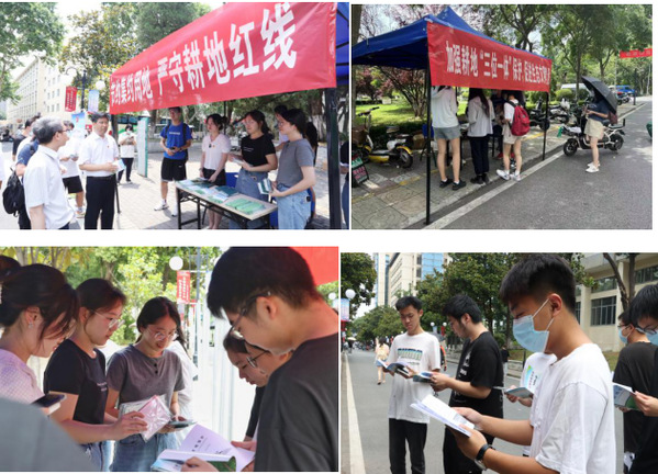 “永久基本农田是什么”“耕地保护有什么意义”……在校园内,党员志愿者设立咨询台、发放宣传手册和知识读本等,向青年学生宣传土地国情和国家土地政策,解读守住耕地保护红线和坚持节约集约用地的重要意义。