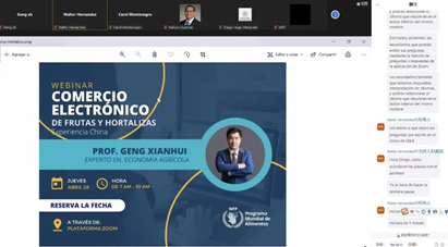 4月28日,耿献辉教授应邀参加“中国生鲜农产品电子商务的发展路径、模式和启示”研讨会,为50余名来自萨尔瓦多、厄瓜多尔、秘鲁等拉美国家的政府官员、技术人员和小农户等行业代表做了题为“中国生鲜电商发展模式与经验启示”的报告。在报告中,耿献辉介绍了中国生鲜农产品电商发展的历程与宏观情况,从政策、经济、社会和技术等四个方面分析了驱动中国生鲜农产品电商快速发展的主要因素,通过具体的案例展示了中国生鲜电商探索的丰富路径和创新模式,最后结合萨尔瓦多的资源禀赋条件对该国发展生鲜农产品电商的有效途径、政策支持等与参会者进行了互动。