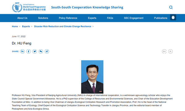 副校长胡锋教授受邀成为南南合作知识分享平台项目(Experts (wfpchinacoe.net))特邀专家,为南南合作提供智力支持;我校经济管理学院耿献辉教授和食品科技学院肖红梅教授先后应邀参加WFP南南合作平行经验研讨会,获得良好反响。