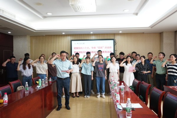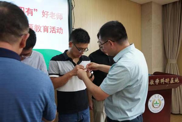 学院领导、老教师代表为新入职教师佩戴校徽。在党委书记韩健的领誓下,新教师进行了入职宣誓仪式,新老教师紧握右拳,庄严宣誓:忠诚党的教育事业,遵守教育法律法规,履行教书育人职责,引导学生健康成长,做到有理想信念、有道德情操、有扎实学识、有仁爱之心,为教育发展、国家繁荣和民族振兴努力奋斗!