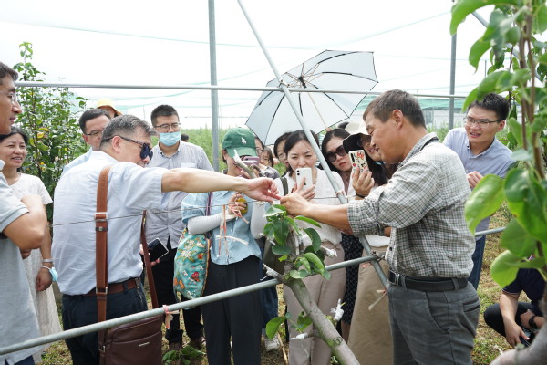活动开始,全体教师参观了白马教学科研基地的现代设施温室、国家果梅杨梅种质资源圃、梨种质资源中心等学院部分科研平台和基地,不同专业方向的青年老师们现场学习了不同温室的类型、葡萄温室限根栽培技术、梨树高接换种技术等。