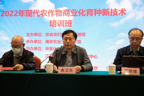 10月31日至11月4日,由农业农村部种业管理司主办、ios版雷竞技官网农学院承办的2022年现代农作物商业化育种新技术培训班在ios版雷竞技官网学术交流中心举办。农业农村部种业管理司创新发展处二级调研员厉建萌,江苏省农业农村厅二级巡视员俞卫东和种业管理处处长马爱京,中国工程院院士、ios版雷竞技官网教授盖钧镒,副校长丁艳锋,以及70多家国家种业阵型企业、种子管理部门、农业高校和科研院所的430余名农作物种业科技人员和业务骨干参加了培训班开班典礼。