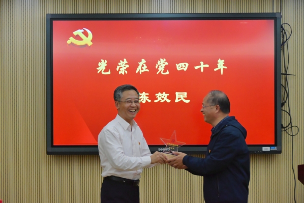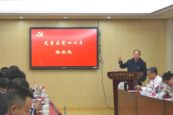 陈效民教授回顾在党40年的点点滴滴,讲述了他从农村青年成长为大学教师一路上党组织对他的教育和培养的初心故事。他嘱托青年党员,要牢记党员初心,为党的形象增光添彩。