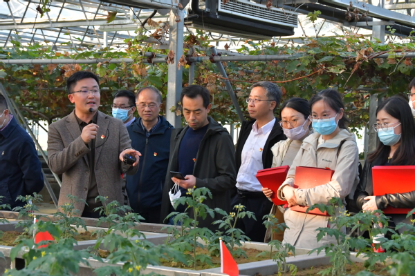在韦中、沈国荣的带领下,与会党员集体参观了资环学院植物营养与肥料学系的框栽原位土柱试验基地和果树土壤微生物区系调控试验基地。长期以来,资环学院土壤微生物与有机肥团队在沈其荣院士的带领下,书写党员责任,立足国家需求,切实破解农业生产,“化腐朽为神奇”,将论文写在祖国大地。