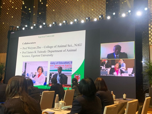 中国-非洲草食动物粗饲料资源高效利用的合作研究合作项目外方负责人肯尼亚埃格顿大学前校长、现任肯尼亚National Land Commission (NLC)的James K. Tuitoek教授、中方负责人朱伟云教授分别介绍了合作项目的内容、合作的成效及双方在合作基础上开展的相关国际合作和人才交流与培养,以及未来在平台建设、人才培养、项目成果在非洲应用推广的计划。