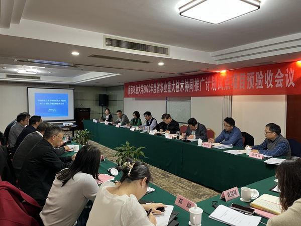 11月14日,ios版雷竞技官网2020年度江苏省农业重大技术协同推广计划试点项目(以下简称“协同推广项目”)预验收会召开。优质小麦、优质葡萄、根茎蔬菜、鲜食特色农产品等四个产业方向的协同推广项目参加预验收。省农业农村厅科教处处长姜雪忠,省农业技术推广总站站长管永祥,省农业科学院科技处处长叶小梅,我校审计处、社会合作处相关部门负责人以及项目负责专家等出席会议。