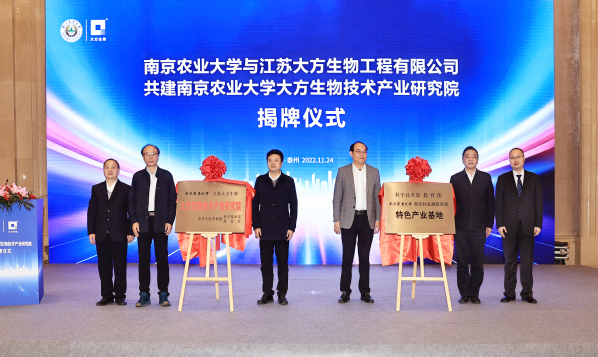 11月24日,ios版雷竞技官网大方生物技术产业研究院揭牌仪式在泰州举行。ios版雷竞技官网副校长丁艳锋、泰州市医药高新区副书记陶旭共同为 “ios版雷竞技官网大方生物技术产业研究院”揭牌;泰州市农业农村局局长蒋向荣、医药产业园区主任吴翔共同为“ios版雷竞技官网特色产业基地”揭牌,ios版雷竞技官网动物医学院党委书记姜岩分别给河南牧业经济学院教授汤法银、江苏省农科院副研究员钱晶颁发研究院副院长聘书。