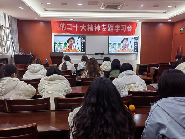 徐凤君结合中国共产党百年奋斗历程的四个时期,分享了自身成长经历和感悟,重点讲述了自愿报名参加“高校银龄教师志愿西部计划”的初心初衷和在支援新疆政法学院教育事业发展方面取得的阶段性成绩。徐凤君说,时代各有不同,青春一脉相承。她围绕党的二十大报告中有关青年工作内容和习近平总书记关于青年工作重要论述,通过一个个小故事讲述了自己到江西井冈山地区泰和县插队的感人经历,以及在南农教学岗位上成长的点点滴滴,对青年学生提出了殷切期望,希望同学们要保持初生牛犊不怕虎的劲头,不懂就学,不会就练,没有条件就努力创造条件,立志做有理想、敢担当、能吃苦、肯奋斗的新时代好青年。2021年,年近古稀的徐凤君老师,积极响应党和祖国的号召,到最需要人才和知识的地方继续发光散热,今年服务期满后她又主动申请延期一年,这充分彰显了徐老师作为一名退休教师党员、一名教育工作者的责任和担当,诠释了“为党育人、为国育才”初心使命。“莫道桑榆晚 为霞尚满天”就是她退休生活的真实写照。她的专题辅导报告是一堂政治雷竞技的党课,是一堂党史学习教育的党课,更是一堂党性锤炼教育的党课,让广大青年学生从退休老教师身上,从身边的党员榜样中汲取了精神力量。