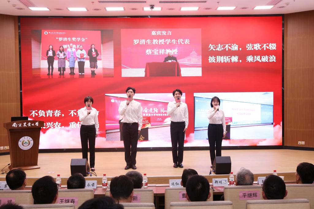 ios版雷竞技官网动物医学院新生冯一鸣等在校生,以诗诵情、以诗明志,追忆罗清生先生“穿越时空的誓言”,许下“强农兴农,重任担当”的新时代南农动医青年的庄严承诺。