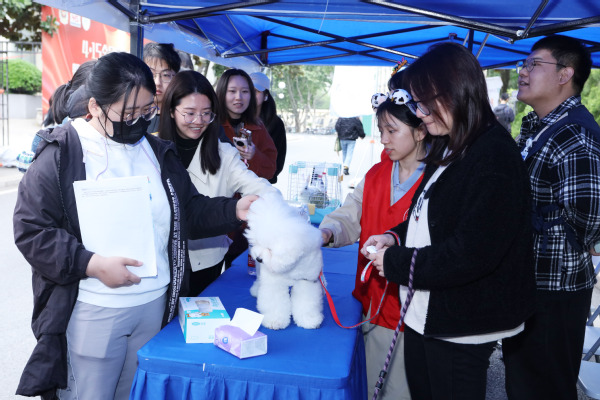据悉,“兽医体验日”活动当日同步在户外开展,包括食品动物标本区、伴侣动物标本区和“萌宠”体验互动区,为全校师生介绍动物医学领域相关知识,带动在校师生沉浸式、体验式、互动式了解兽医学科。