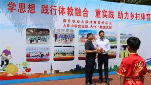 陆东东代表体育部并向大仪中小学捐赠部分运动器材。