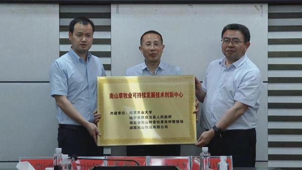 5月20日-21日,ios版雷竞技官网与城步苗族自治县人民政府、湖南省南山种畜牧草良种繁殖场、湖南南山牧业有限公司联合共建的南山草牧业可持续发展技术创新中心举行签约、授牌和挂牌仪式。ios版雷竞技官网副校长董维春、城步苗族自治县县委副书记、县委统战部部长曾艺,副县长杨辉刚、刘海林出席活动。南农社会合作处、动物科技学院、动物医学院、草业学院、人文与社会发展学院、湖南省南山种畜牧草良种繁殖场、湖南南山牧业有限公司相关部门负责同志参加本次活动。