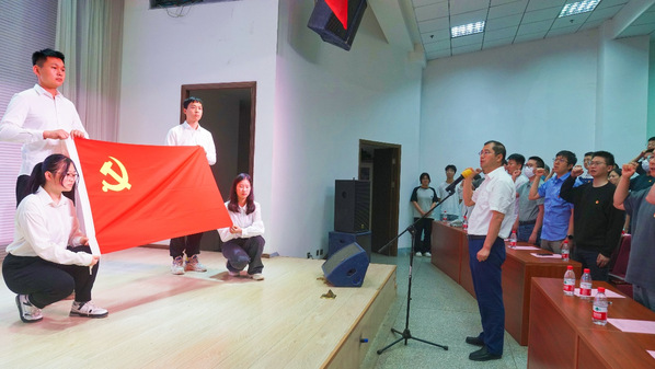 孙健带领全体师生党员重温了入党誓词。
