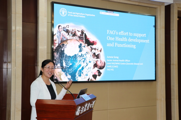 宋俊霞博士介绍了粮农组织OneHealth的基本结构框架和主要工作的基本构架与工作重点。她表示,粮农组织与南农大已有良好历史渊源和合作基础,双方在One Health学术合作、专家智库、平台建设等方面有较好合作前景,希望双方积极推进伙伴关系、开展更广泛的交流、促进各种正式和非正式合作。