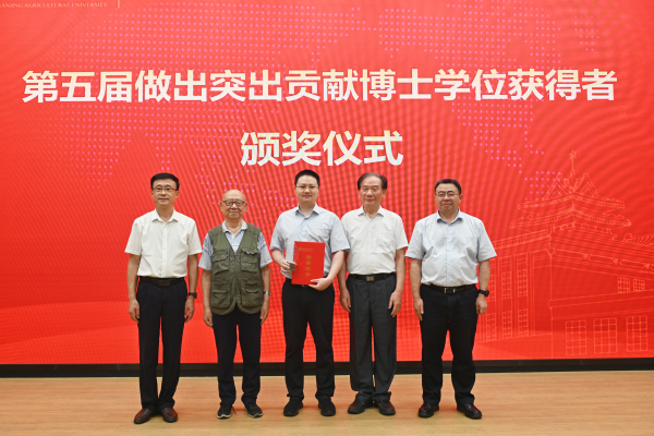 会议举行了第五届“做出突出贡献博士学位获得者”颁奖仪式。胡锋宣读了第五届获得者名单,禹山林校友、谭荣校友获得该项荣誉。盖钧镒、沈其荣、胡锋、董维春共同为获奖者颁发了证书和奖杯。谭荣校友作为获奖代表发表了感言。据悉,学校于2018年设立该奖项,旨在突出高层次人才培养的示范效应,表彰在学术领域取得重大成就、产生重大影响力的博士毕业生,前四届表彰授予了邹学校院士、宋宝安院士、胡培松院士在内的八位校友该项荣誉。
